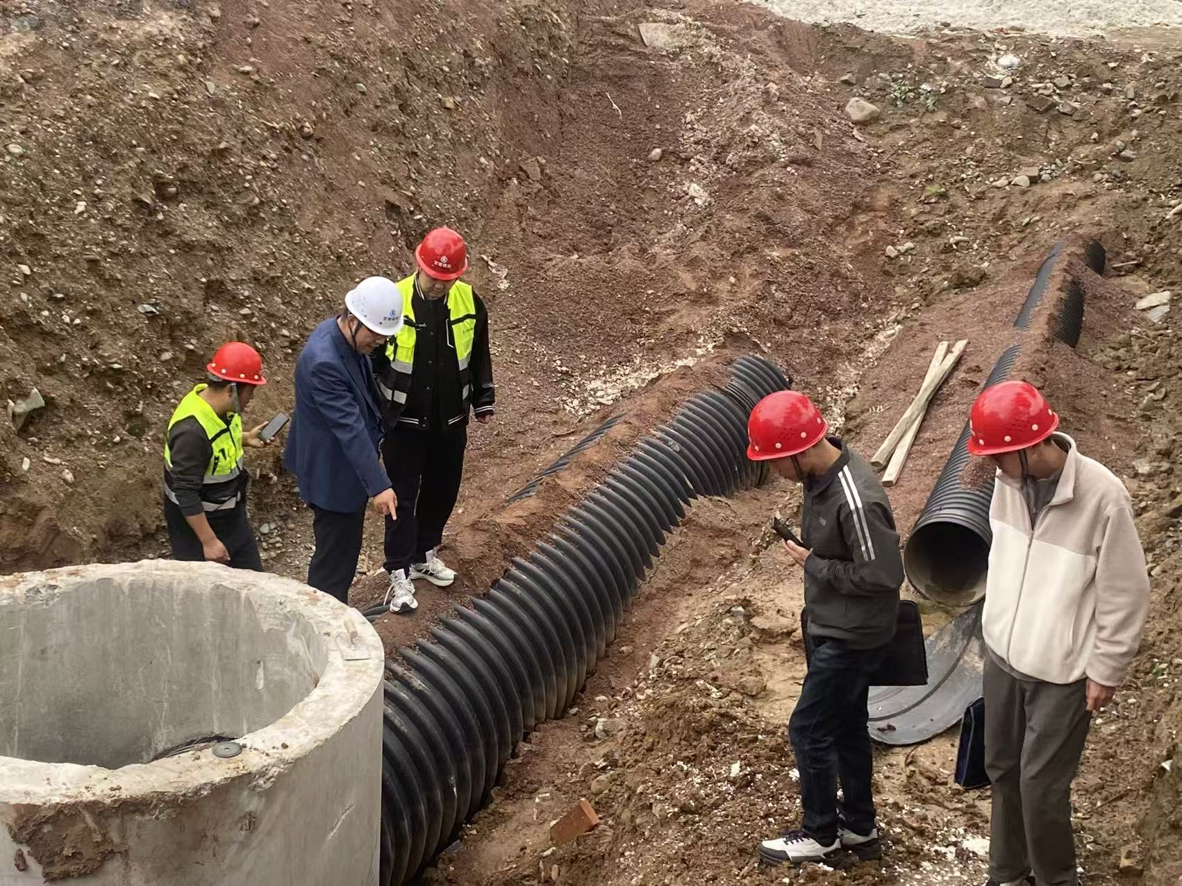 楊興鴻一行深入排水管道施工區(qū)域施工現(xiàn)場(chǎng),通過(guò)實(shí)地察看、尺量檢測(cè)、查閱施工記錄、詢問(wèn)作業(yè)人員等方式,詳細(xì)了解項(xiàng)目施工進(jìn)度、安全防護(hù)設(shè)施布設(shè)、施工工序銜接等整體情況,對(duì)項(xiàng)目前期在市政工程施工組織和基礎(chǔ)安全管理方面取得的成效給予肯定,并結(jié)合調(diào)研情況及市政工程施工特點(diǎn),對(duì)下一步工作提出明確要求: